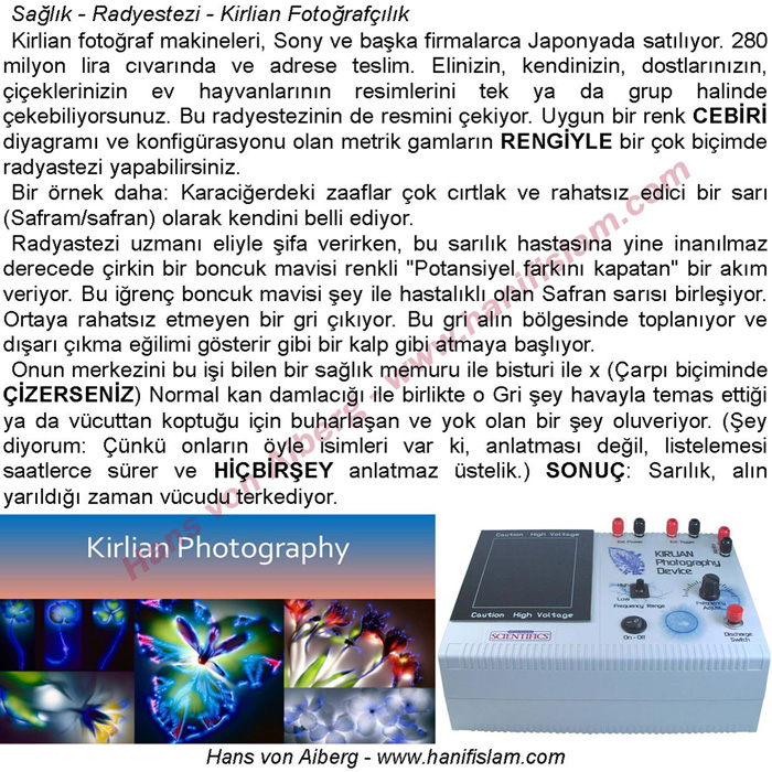 Madem ki Kirlian fotoğraf makinesi evlere servis pazarlanıyor alın ve araştırın. Daha ne yapsın Zavallım Hans. Apaçık ve detaylı anlatıyorum.