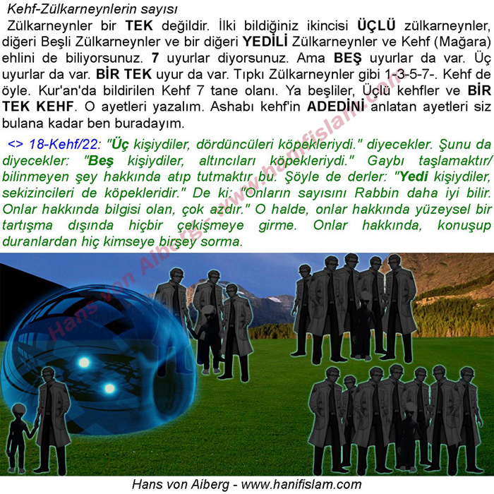 Zülkarneynler bir TEK değildir. İlki bildiğiniz ikincisi ÜÇLÜ zülkarneynler, diğeri Beşli Zülkarneynler ve bir diğeri YEDİLİ Zülkarneynler ve Kehf (Mağara) ehlini de biliyorsunuz.