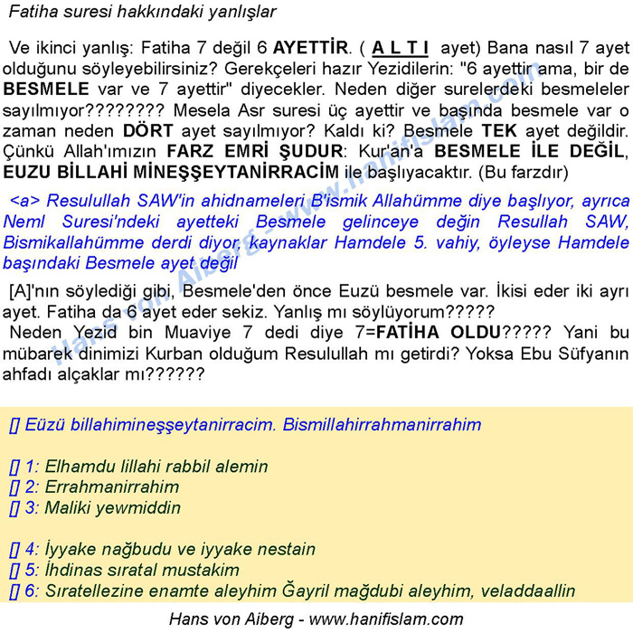 2. Fatiha 7 değil 6 AYETTİR. ( A L T I ayet) Bana nasıl 7 ayet olduğunu söyleyebilirsiniz?