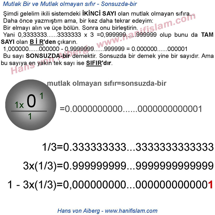 MUTLAK bir var ama karşılığında MUTLAK SIFIR HİÇ YARATILMADIĞINDAN… ikili sistem için Üçüncü bir sayı gerekmiştir: İşte onun adı da bildiğimiz sıfırdır. Yani şu